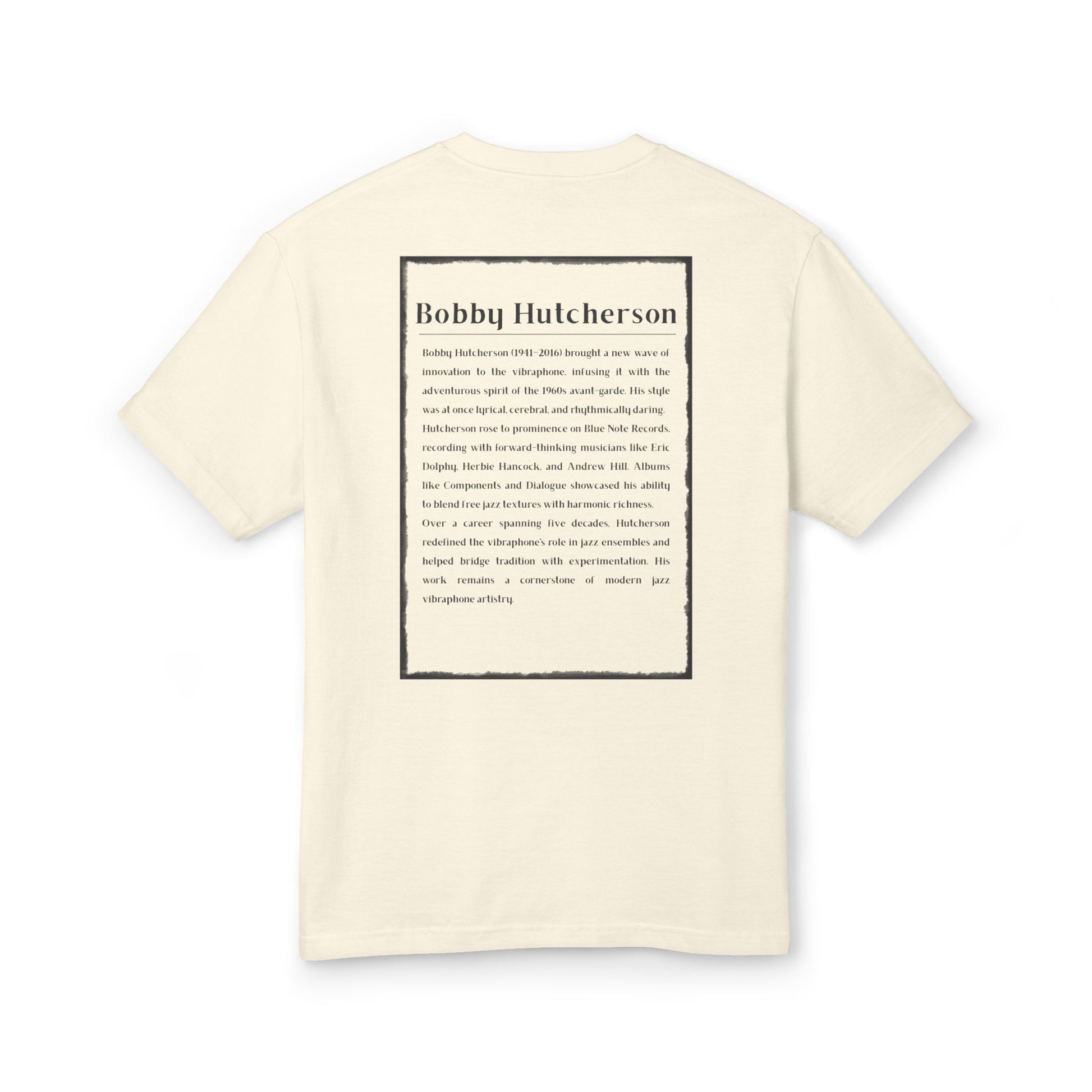 Step into the future of jazz with this striking tribute tee to Bobby Hutcherson - the visionary vibraphonist who expanded the instrument’s emotional and harmonic range like no one before him. From the avant-garde to post-bop, Hutcherson’s playing was lyrical, daring, and deeply human.
