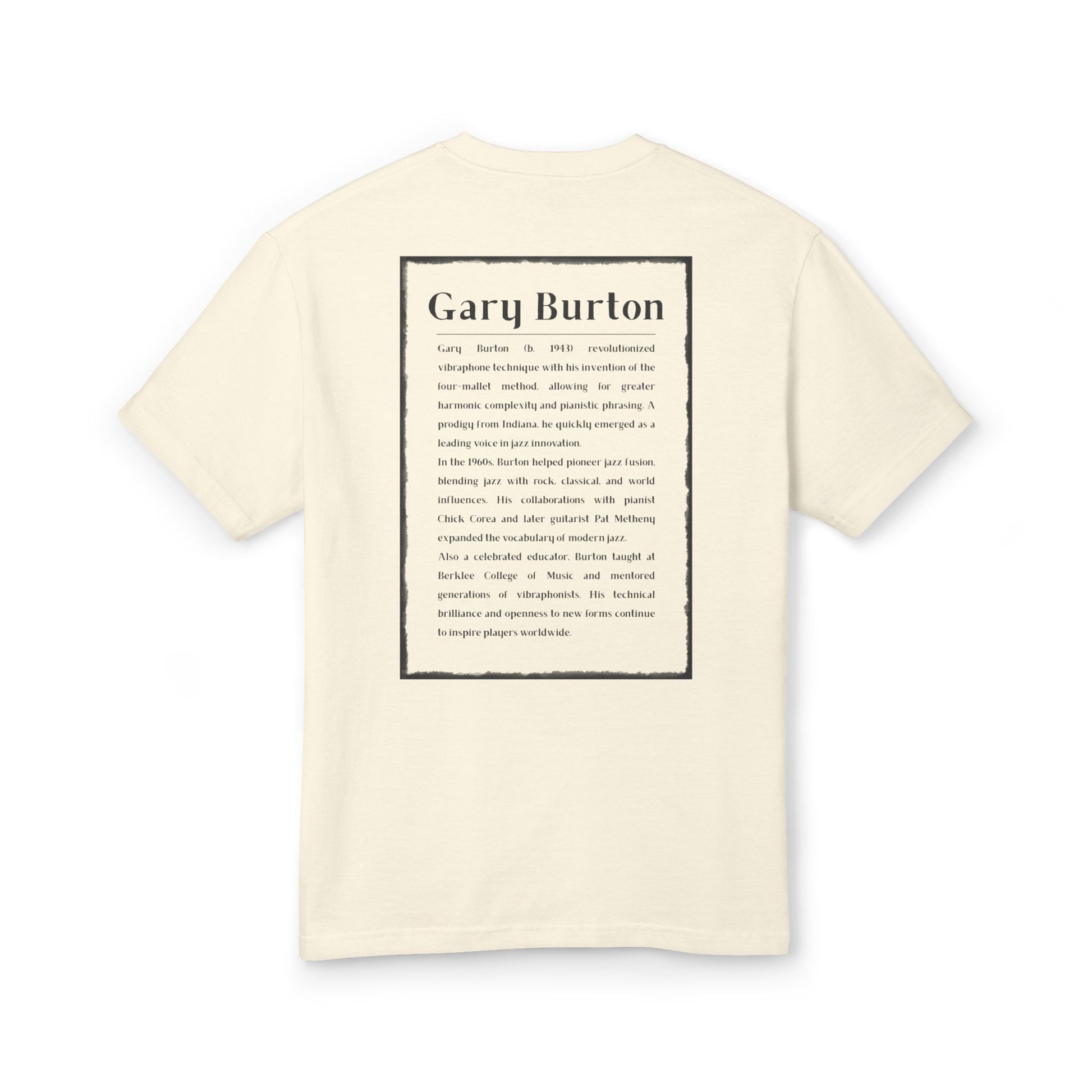 This tribute tee features a modern, minimalist design inspired by Burton’s clean tone and intellectual edge. Printed on soft, high-quality cotton, it’s perfect for jazz purists, fusion fans, and anyone who appreciates musical innovation with soul.