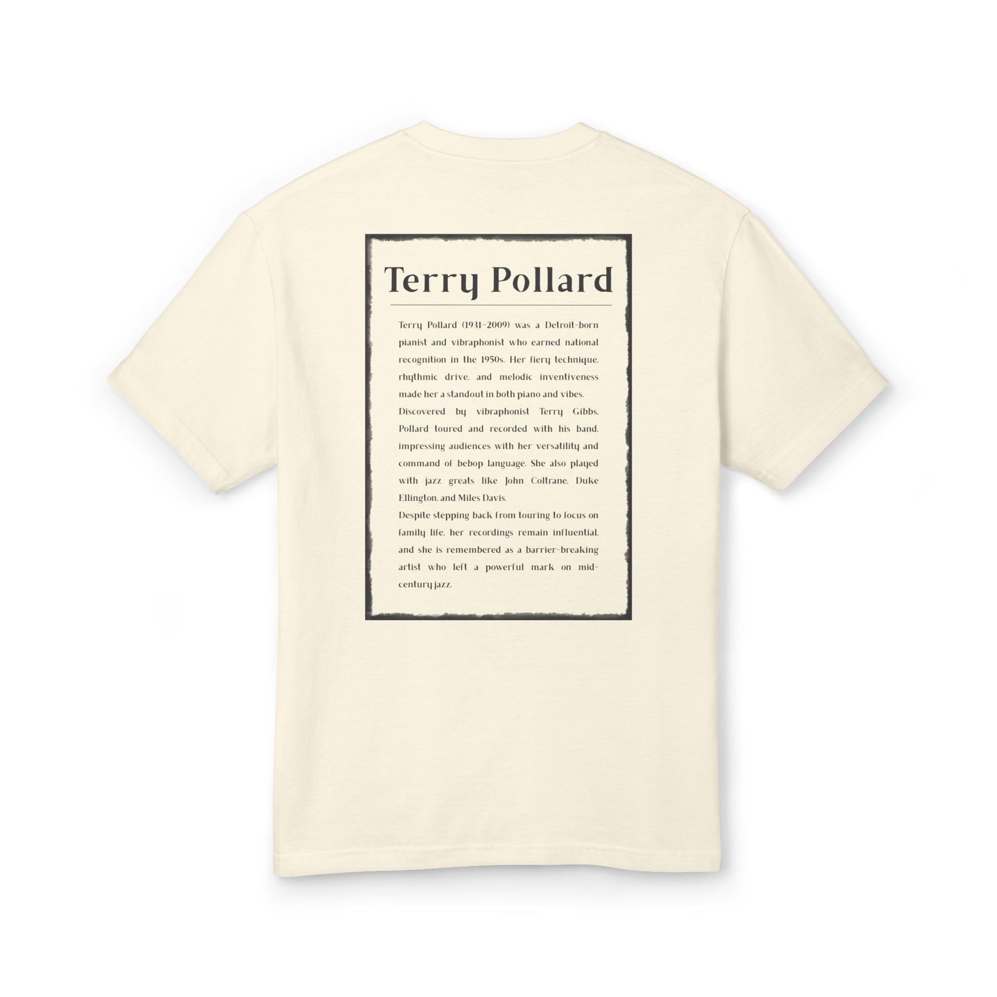 Celebrate the brilliance of Terry Pollard - the unsung queen of the vibraphone - with this exclusive tribute t-shirt honoring her legacy. A masterful pianist and vibraphonist, Pollard broke barriers in the 1950s jazz scene with her swing, sophistication, and soul. Now, her vibe lives on.